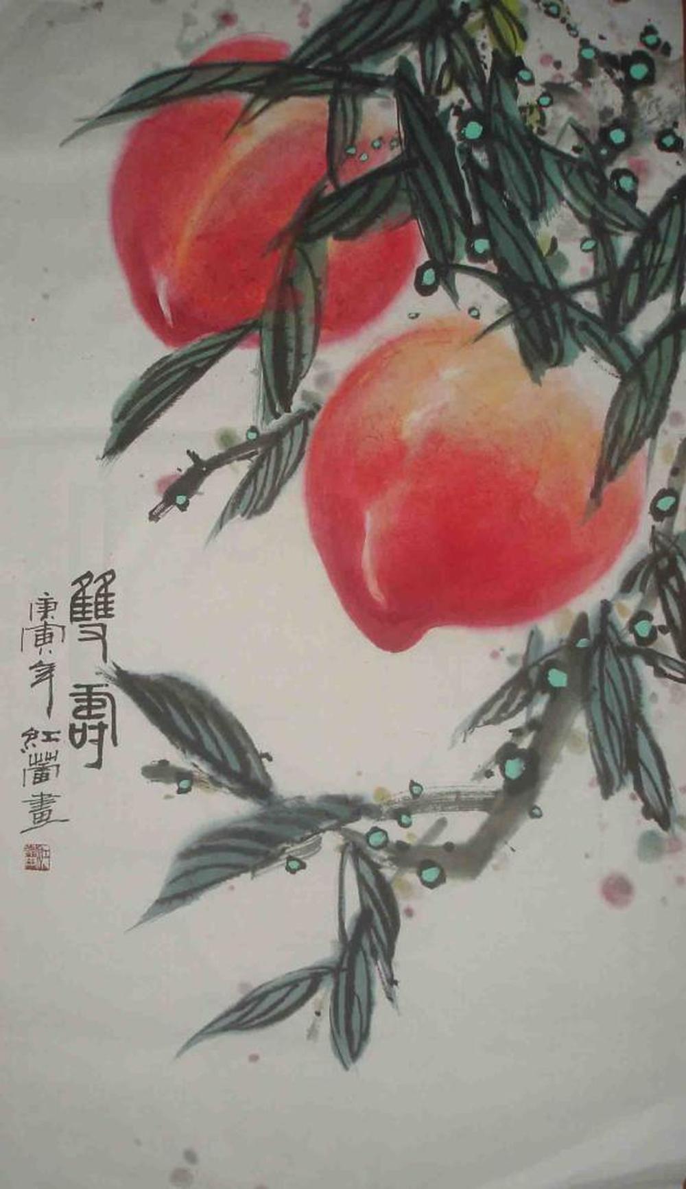 双寿图,未裱,35厘米*70厘米。